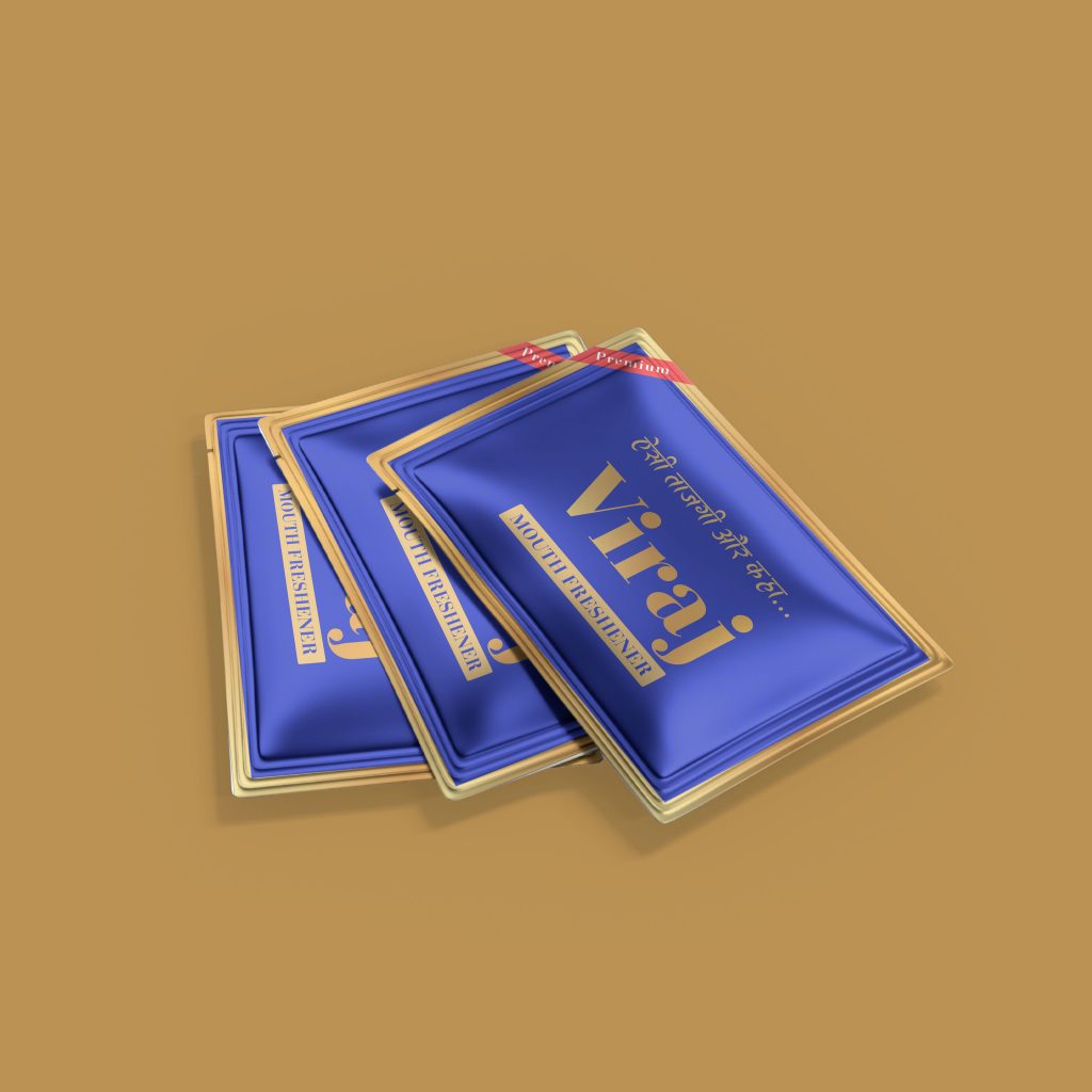 Our latest pouch design work for the Viraj Mouth Freshener product. We have provided them a unique and attractive package design at affordable rates.